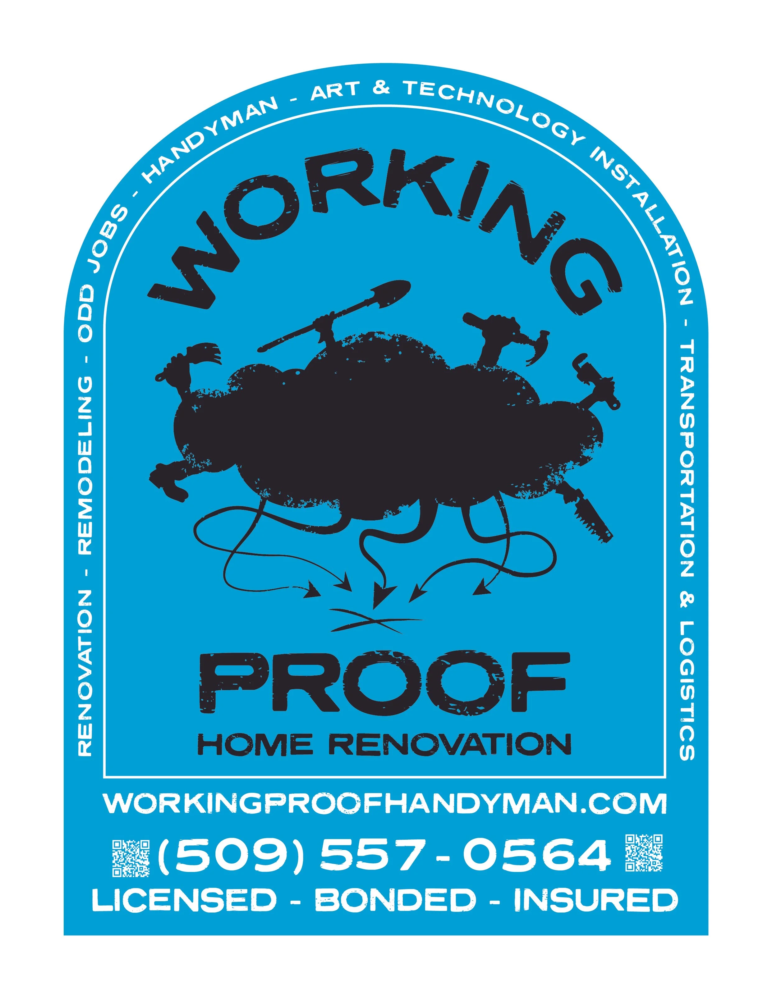 Working Proof is the small business created by Scott Kolbo to provide general handyman work, home renovation/remodeling services, and art/technology installation, and logistics (moving things around with his van). Scott worked for most of his career as an art professor and still teaches part time at Western Washington University and other local schools. Scott brings a skill set built around problem solving and professionalism, with experience in everything from transporting and installing high end artworks, to general construction/odd jobs. Working Proof operates out of north Whatcom County, serving the greater Bellingham/Skagit/Seattle/North Puget Sound region.